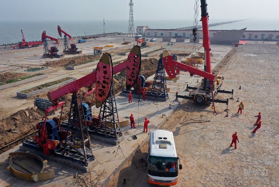 位于黃河入??诘膭倮吞镌诜?wù)國家能源安全的同時,順應(yīng)生態(tài)文明建設(shè)大勢。2020年,位于自然保護區(qū)核心區(qū)、緩沖區(qū)內(nèi)的300處油田生產(chǎn)設(shè)施全面完成退出。這是工人在拆除采油設(shè)備設(shè)施(2020年10月19日攝)。