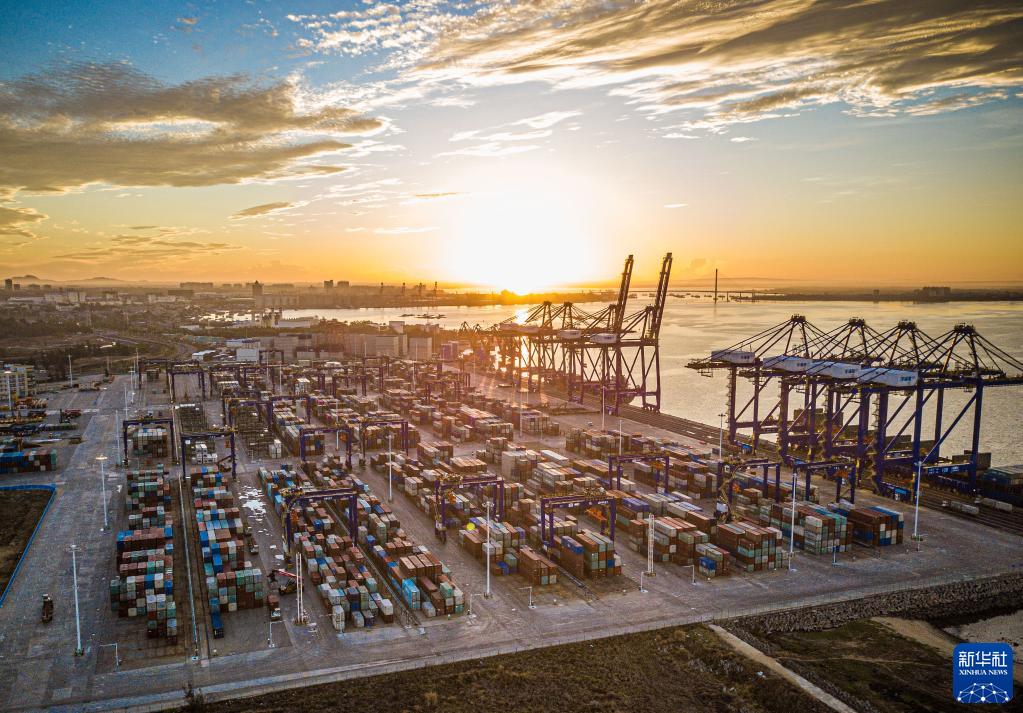 這是在海南洋浦經(jīng)濟(jì)開(kāi)發(fā)區(qū)拍攝的洋浦國(guó)際集裝箱碼頭(5月26日攝,無(wú)人機(jī)照片)。新華社記者 蒲曉旭 攝