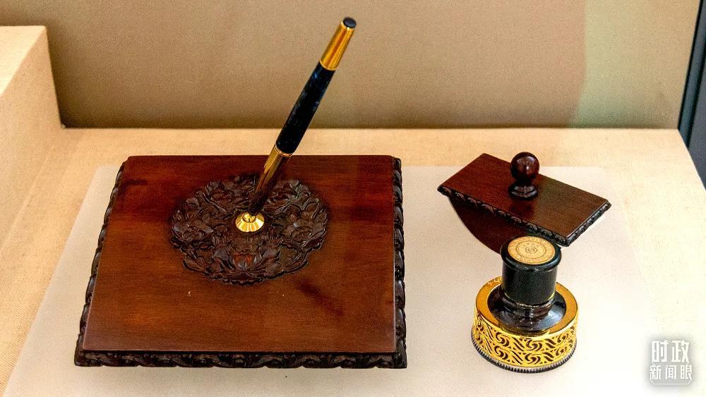 △這是在多哈會議上簽署中國加入世貿組織法律文件時使用的文具。(圖/視覺中國)