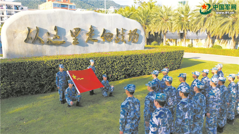 海軍某聯(lián)合訓(xùn)練基地官兵在軍旗下宣誓。吳永華攝