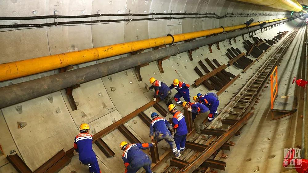 △2021年12月,施工人員在長江盾構穿越工程隧道內安裝施工道岔。這一工程是中俄東線天然氣管道的“咽喉”項目。(圖/視覺中國)