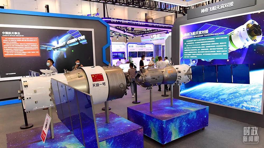 △福建廈門,“天宮一號”飛行器模型亮相2021金磚國家新工業(yè)革命展。(圖/視覺中國)