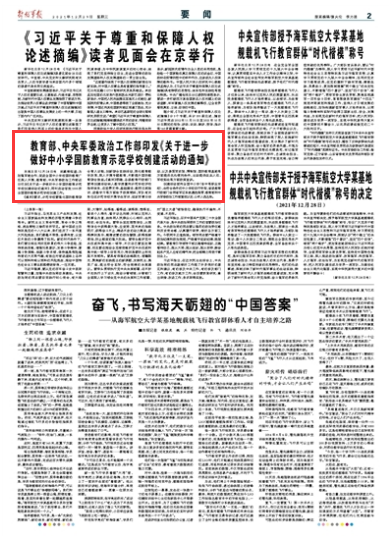 解放軍報(bào)北京12月28日電 祝鵬卿報(bào)道:為加強(qiáng)軍地合作,促進(jìn)全國(guó)中小學(xué)校國(guó)防教育廣泛深入開展,教育部、中央軍委政治工作部近日印發(fā)《關(guān)于進(jìn)一步做好中小學(xué)國(guó)防教育示范學(xué)校創(chuàng)建活動(dòng)的通知》,同時(shí)啟動(dòng)首批1000所全國(guó)國(guó)防教育示范學(xué)校創(chuàng)建工作。