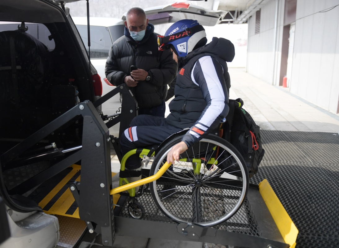 為保障殘疾人運動員活動便利,北京冬奧會和冬殘奧會延慶賽區(qū)國家高山滑雪中心為殘疾人運動員提供專用車輛(2021年2月23日)。新華社記者 張晨霖 攝