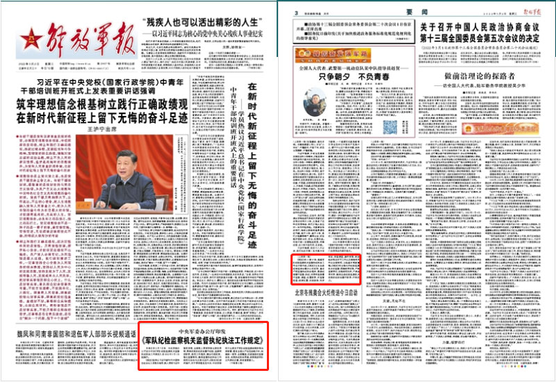 解放軍報(bào)北京3月1日電 中央軍委辦公廳近日印發(fā)《軍隊(duì)紀(jì)檢監(jiān)察機(jī)關(guān)監(jiān)督執(zhí)紀(jì)執(zhí)法工作規(guī)定》,自2022年3月1日起施行。