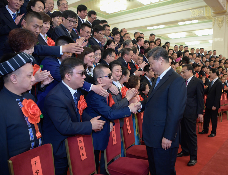 2019年5月16日,黨和國家領(lǐng)導(dǎo)人習(xí)近平、李克強(qiáng)、王滬寧等在北京人民大會堂會見第六次全國自強(qiáng)模范暨助殘先進(jìn)表彰大會代表。新華社記者 李學(xué)仁 攝