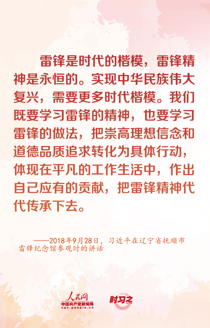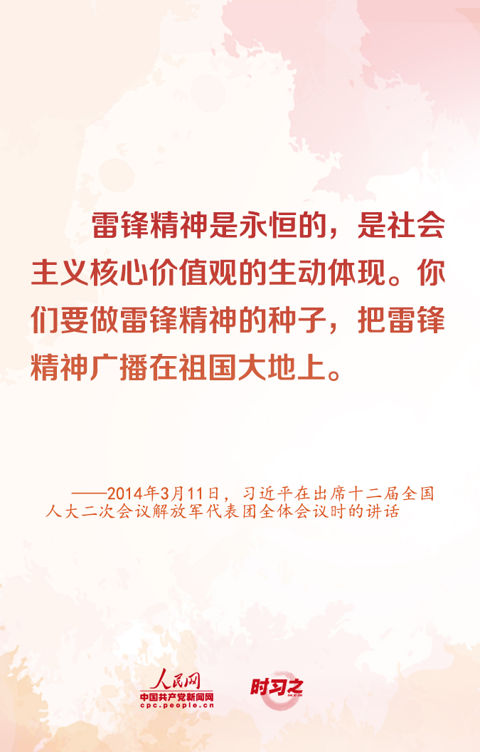 3月5日是學(xué)雷鋒紀念日?!袄卒h精神是永恒的,是社會主義核心價值觀的生動體現(xiàn) ”“把雷鋒精神代代傳承下去 ”“讓學(xué)習(xí)雷鋒精神在祖國大地蔚然成風 ”……黨的十八大以來,習(xí)近平總書記多次就學(xué)習(xí)和弘揚雷鋒精神作出重要論述。新時代的雷鋒精神是否有新的內(nèi)涵?新時代該如何繼續(xù)弘揚雷鋒精神?讓我們從習(xí)近平總書記的講話和信里尋找答案。