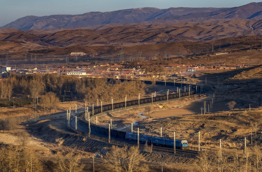 2021年12月23日,一列萬噸煤炭列車行駛在內(nèi)蒙古烏蘭察布市卓資縣境內(nèi)。新華社發(fā)(紀(jì)恩泉攝)