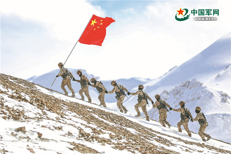 新疆軍區(qū)某邊防團官兵不畏嚴寒巡邏守邊。 黃飛皓攝