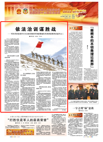 會場內(nèi)外,軍隊代表委員談到,新年伊始,習主席向全軍發(fā)布開訓動員令,要求“緊盯科技之變、戰(zhàn)爭之變、對手之變,大力推進戰(zhàn)訓耦合,大力推進體系練兵,大力推進科技練兵,全面推進軍事訓練轉(zhuǎn)型升級,練就能戰(zhàn)善戰(zhàn)的精兵勁旅”。戰(zhàn)訓耦合、體系練兵、科技練兵,都需要立起依法治訓鮮明導向,把按綱施訓、遵規(guī)抓訓的理念立起來、落下去。