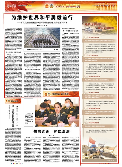 捍衛(wèi)和平事業(yè),中國重信守諾。去年,為積極響應聯(lián)合國“為維和而行動”的倡議,切實推動維和出兵國之間的務實合作,中國軍隊在陸軍確山某訓練基地首次組織了國際維和多邊實兵演習。演習中,多種新質力量配合運用,讓人關注。不少對這場演習有著深刻印象的軍隊代表委員表示,近年來,中國維和部隊的構成從單一軍種為主向多軍兵種拓展,任務類型從支援保障向綜合多能轉型,行動目標從制止武裝沖突向建設持久和平延伸,維和能力不斷提升。