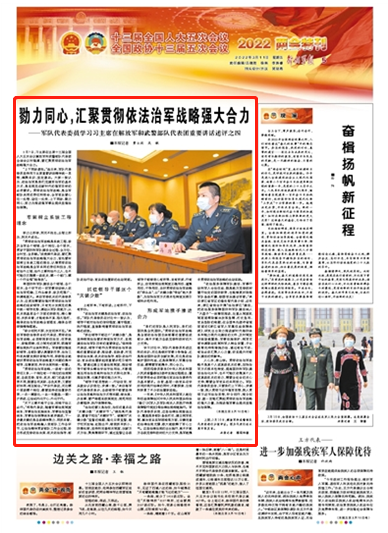 學(xué)習(xí)討論中,軍隊(duì)代表委員形成這樣的共識(shí):無(wú)論是做好軍事斗爭(zhēng)準(zhǔn)備,還是推動(dòng)國(guó)防動(dòng)員創(chuàng)新發(fā)展;無(wú)論是依法維護(hù)國(guó)防利益,還是保障軍人軍屬合法權(quán)益,都需要軍地?cái)y手,同心合力。