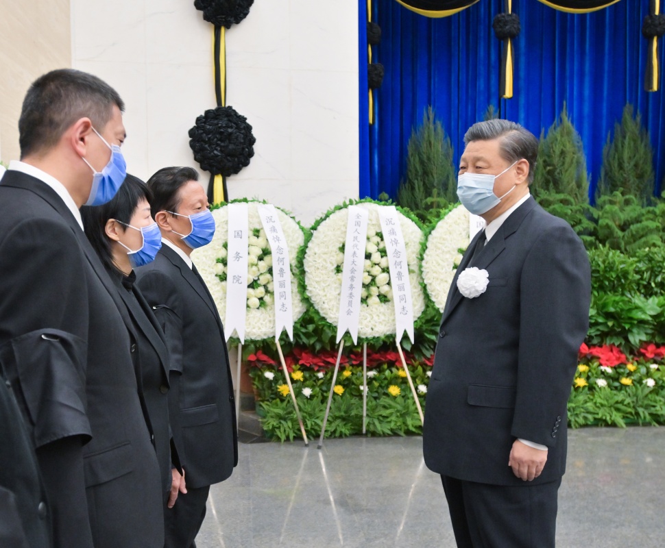 上午9時40分許,習(xí)近平、栗戰(zhàn)書、汪洋等,在哀樂聲中緩步來到何魯麗同志的遺體前肅立默哀,向何魯麗同志的遺體三鞠躬,并向何魯麗同志親屬表示深切慰問。