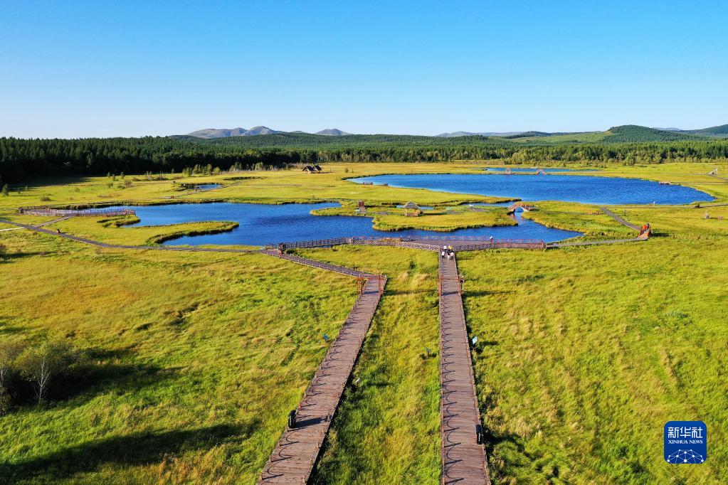 這是河北塞罕壩機(jī)械林場七星湖景區(qū)(2021年8月22日攝,無人機(jī)照片)。新華社記者 牟宇 攝