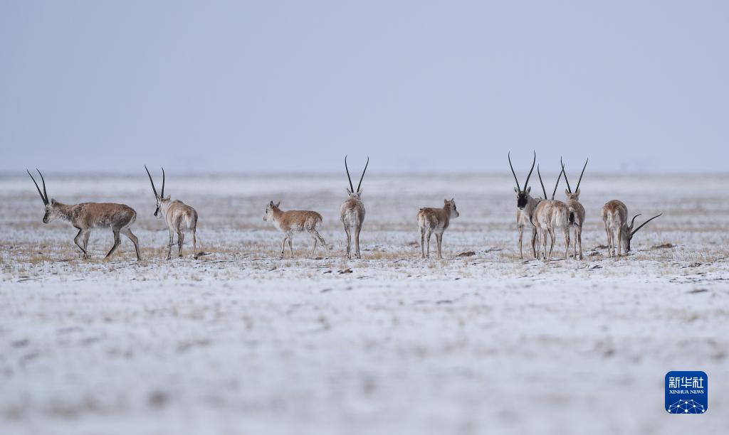 2021年4月20日,藏羚羊在三江源可可西里地區(qū)活動(dòng)。新華社記者 吳剛 攝