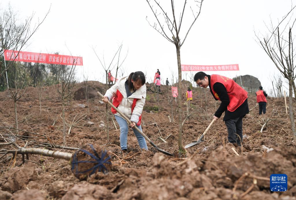 3月1日,在重慶市璧山區(qū),參加義務(wù)植樹活動(dòng)的志愿者在植樹。新華社記者 王全超 攝