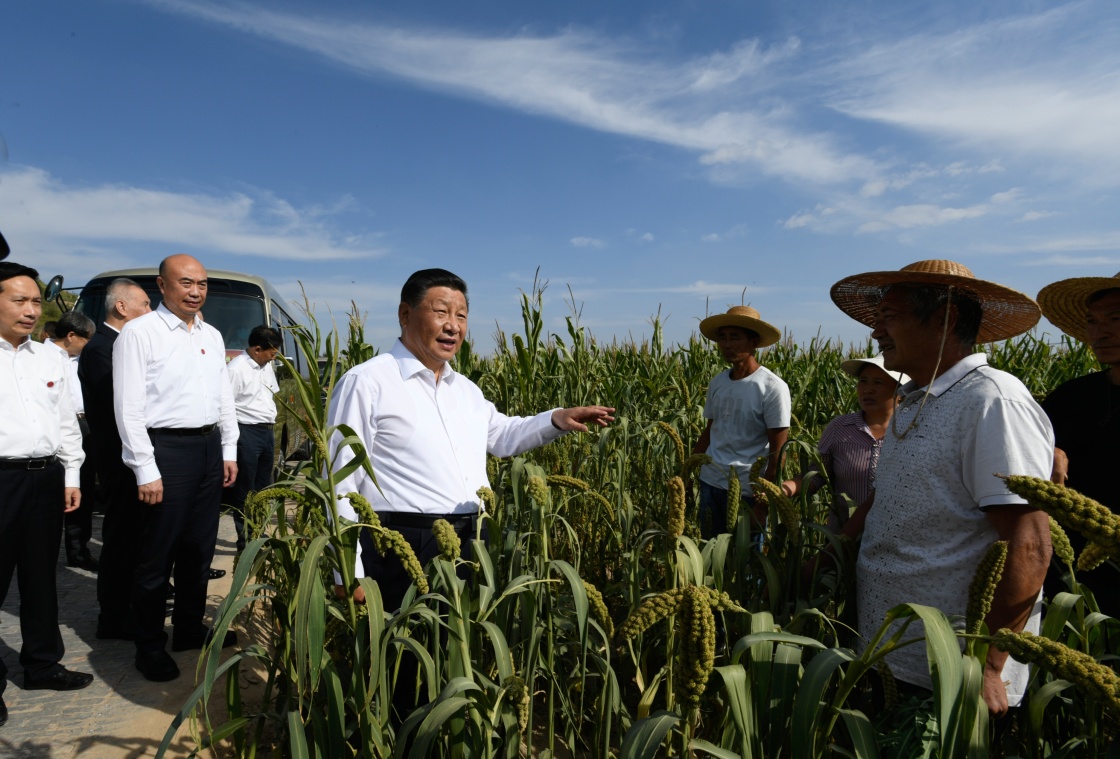 2021年9月13日至14日,中共中央總書(shū)記、國(guó)家主席、中央軍委主席習(xí)近平在陜西省榆林市考察。這是13日下午,習(xí)近平在米脂縣銀州街道高西溝村臨時(shí)下車(chē),察看糧食作物長(zhǎng)勢(shì),同正在田間勞作的老鄉(xiāng)拉家常。 新華社記者 李學(xué)仁/攝
