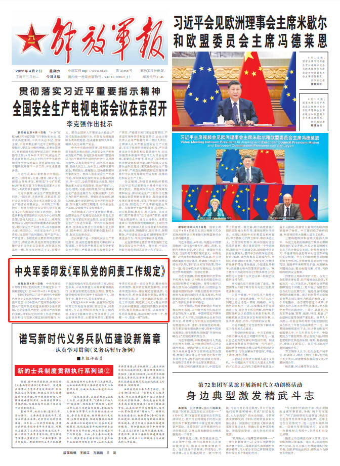 解放軍報(bào)北京4月1日電 中央軍委近日印發(fā)《軍隊(duì)黨的問(wèn)責(zé)工作規(guī)定》(以下簡(jiǎn)稱(chēng)《規(guī)定》),自2022年4月1日起施行。