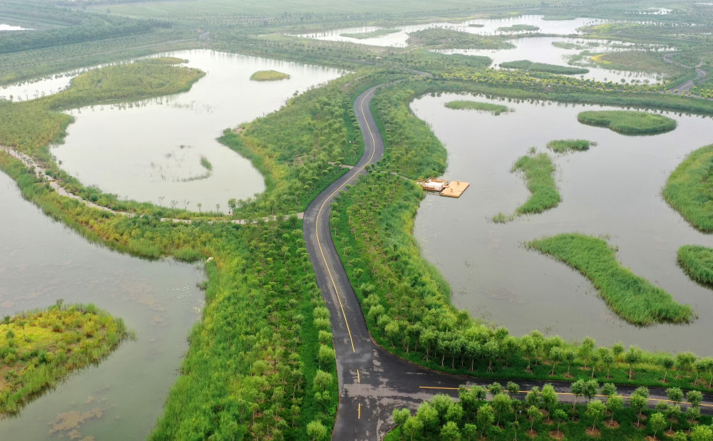 天津西青生態(tài)廊道一景(2021年8月16日攝,無人機照片)。新華社記者 李然 攝