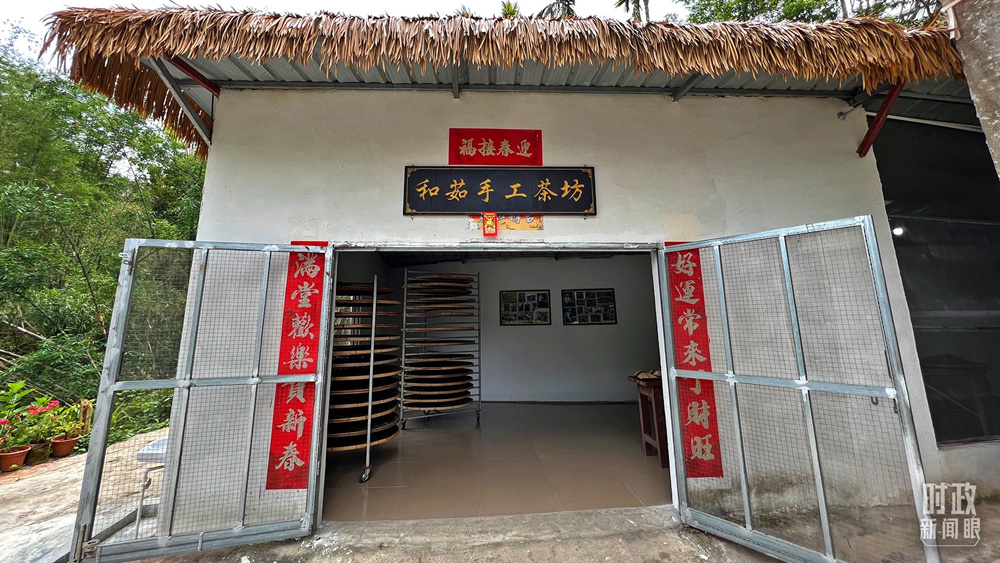 △王柏和、王菊茹夫婦開的手工制茶作坊以及他們制作水滿大葉茶時(shí)的工作照。(總臺央視記者邢彬、央廣記者潘毅拍攝)
