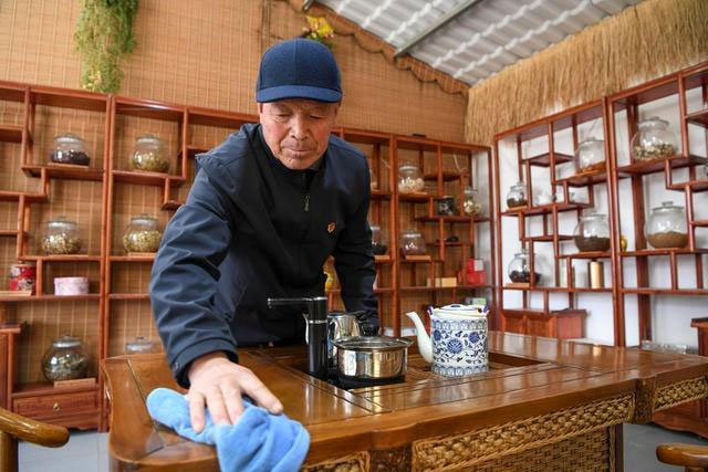 △ 馬克俊在自家開的茶館里擦拭桌子(3月22日攝)。新華社記者 馮開華 攝