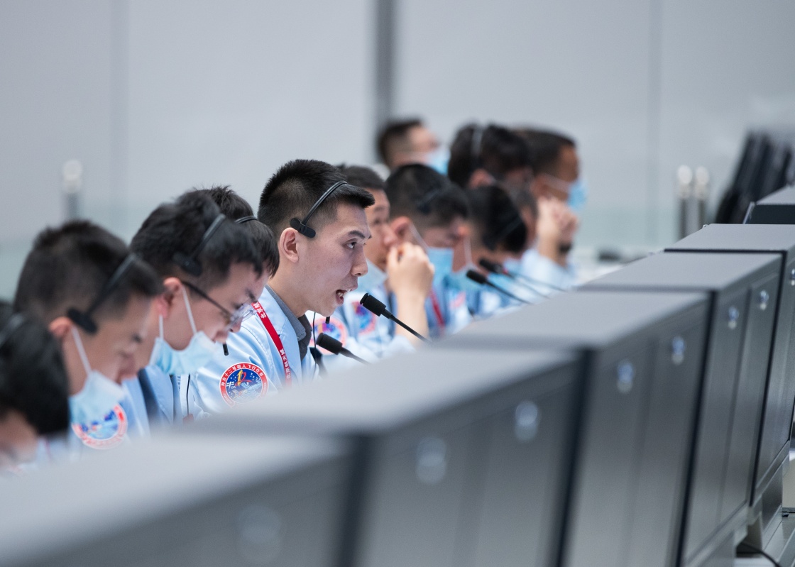 2021年6月17日,在北京航天飛行控制中心,科研人員在監(jiān)測神舟十二號載人飛船與天和核心艙自主快速交會對接情況。新華社記者 金立旺 攝