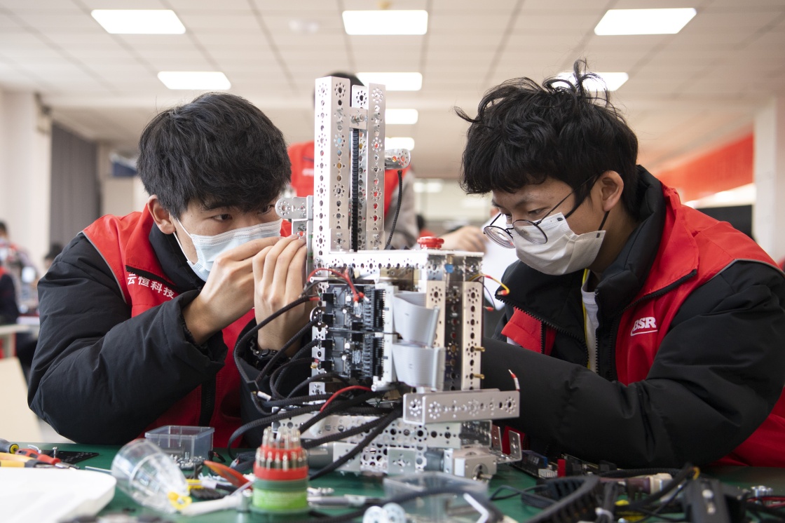 2021年12月25日,第三屆山西省職業(yè)技能大賽參賽選手在位于山西機械高級技工學(xué)校的移動機器人項目賽場進行比賽。新華社記者 楊晨光 攝