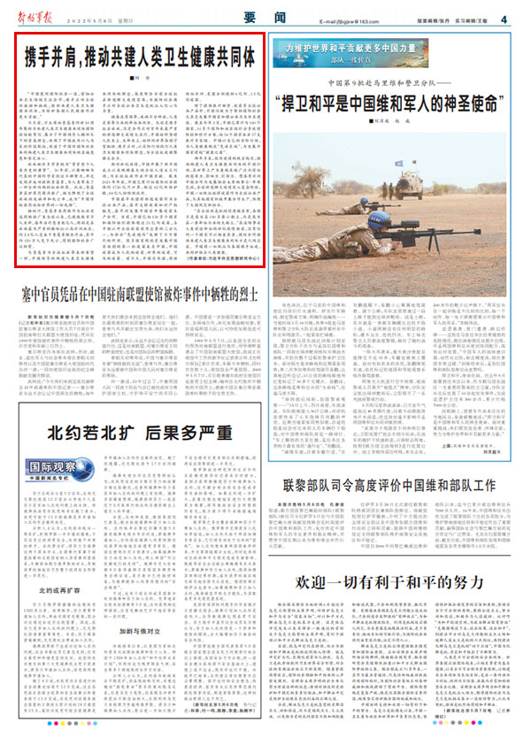 “中國愿同國際社會(huì)一道,密切公共衛(wèi)生領(lǐng)域交流合作,攜手應(yīng)對全球性威脅和挑戰(zhàn),推動(dòng)共建人類衛(wèi)生健康共同體,為維護(hù)各國人民健康作出更大貢獻(xiàn)。”