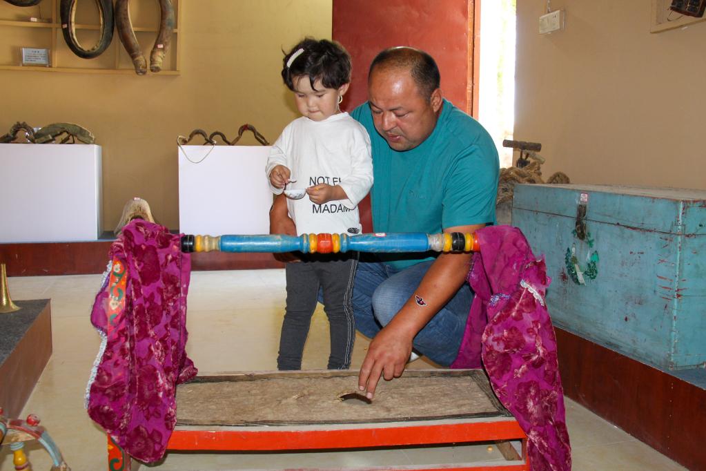 “我的兄弟姐妹都是在這個(gè)搖床里長大的。”海拉提說,自己幼年時(shí)代,大人們忙著干農(nóng)活、喂牲畜、洗衣做飯,對(duì)小孩無法做到“全天候”照顧,為了減輕照看嬰幼兒的壓力,搖床發(fā)揮了大用處。