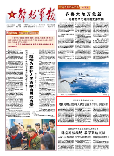 對扎實做好退役軍人就業(yè)創(chuàng)業(yè)工作作出部署安排