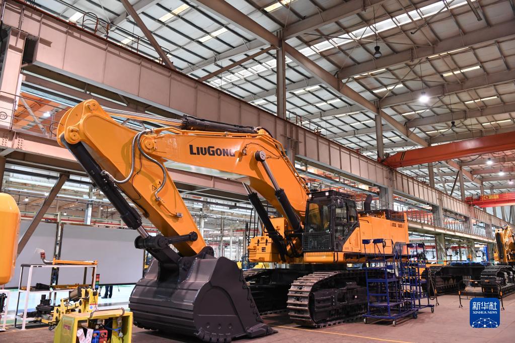 這是廣西柳工集團(tuán)有限公司生產(chǎn)廠房?jī)?nèi)正在組裝的機(jī)械(2021年4月26日攝)。新華社記者 曹祎銘 攝