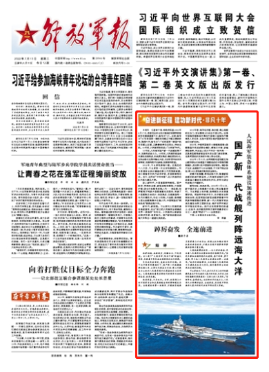 解放軍報(bào)訊 記者康子湛、錢曉虎報(bào)道:2022年6月17日,我國完全自主設(shè)計(jì)建造的首艘彈射型航空母艦福建艦下水,舷號為“18”。此刻,舷號為“16”的我國第一艘航空母艦遼寧艦正劈波斬浪,馳騁大洋;舷號為“17”的我國第一艘國產(chǎn)航空母艦山東艦,正靜靜地停泊在碼頭,待命出航。10年間,人民海軍航母進(jìn)入“三劍客”時(shí)代。