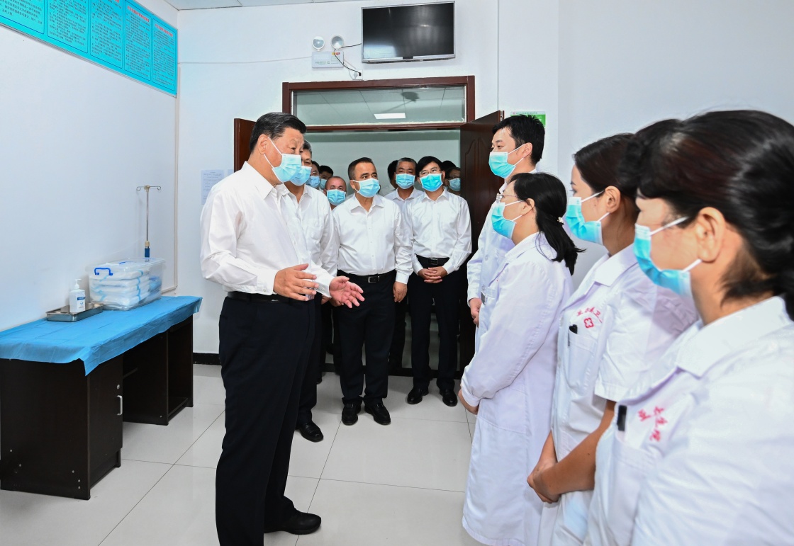 7月12日至15日,中共中央總書記、國(guó)家主席、中央軍委主席習(xí)近平在新疆考察。這是14日,習(xí)近平在吐魯番市高昌區(qū)亞爾鎮(zhèn)新城片區(qū)新城西門村黨群服務(wù)中心醫(yī)務(wù)室考察。新華社記者 燕雁 攝