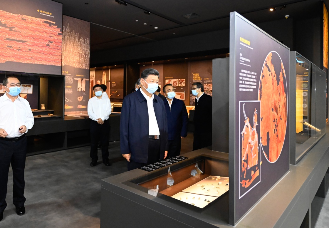 7月12日至15日,中共中央總書記、國(guó)家主席、中央軍委主席習(xí)近平在新疆考察。這是13日上午,習(xí)近平在烏魯木齊市新疆維吾爾自治區(qū)博物館參觀《新疆歷史文物展》。新華社記者 李學(xué)仁 攝