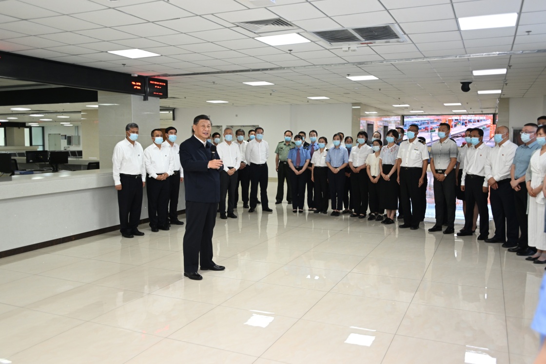 7月12日至15日,中共中央總書記、國(guó)家主席、中央軍委主席習(xí)近平在新疆考察。這是12日下午,習(xí)近平在烏魯木齊國(guó)際陸港區(qū),同工作人員及現(xiàn)場(chǎng)辦事人員親切交流。新華社記者 謝環(huán)馳 攝