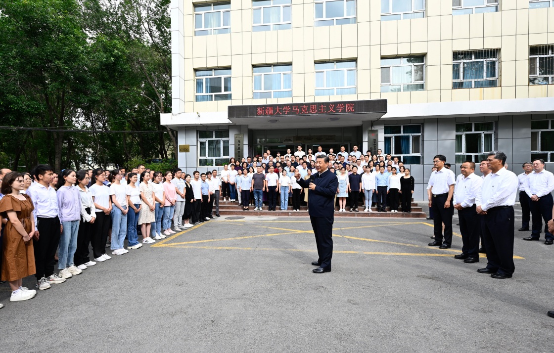 7月12日至15日,習(xí)近平在新疆維吾爾自治區(qū)黨委書記馬興瑞、自治區(qū)政府主席艾爾肯·吐尼亞孜陪同下,先后來到烏魯木齊、石河子、吐魯番等地,深入學(xué)校、國(guó)際陸港區(qū)、社區(qū)、博物館、農(nóng)村和新疆生產(chǎn)建設(shè)兵團(tuán)等進(jìn)行調(diào)研。