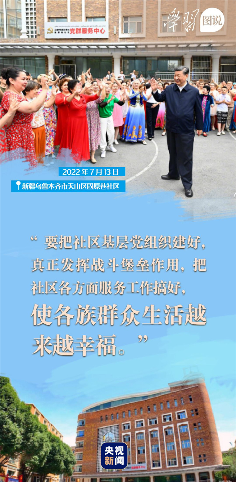 △2022年7月13日,習(xí)近平總書記來到新疆烏魯木齊市天山區(qū)固原巷社區(qū)考察。