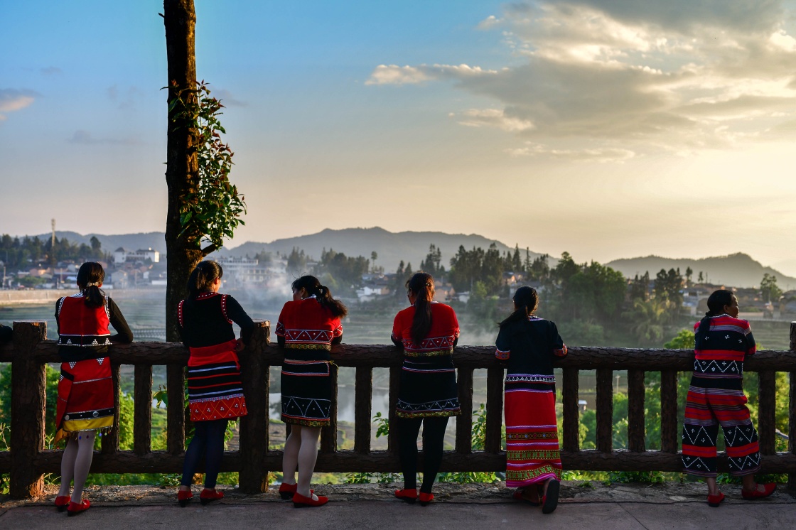 2020年5月15日,云南省騰沖市清水鄉(xiāng)三家村中寨司莫拉佤族村村民在廣場(chǎng)上休息。新華社記者 胡超 攝