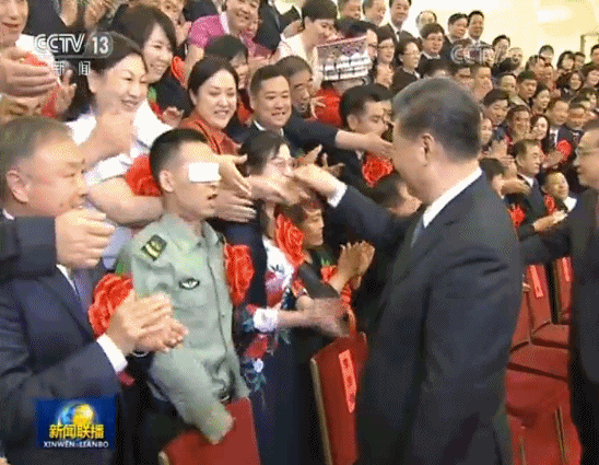 2019年5月16日,第六次全國自強(qiáng)模范暨助殘先進(jìn)表彰大會(huì)在人民大會(huì)堂舉行。雷鳴般的掌聲中,習(xí)近平主席在雙眼蒙著厚厚紗布的杜富國面前停下,輕輕拍了拍他的肩膀。