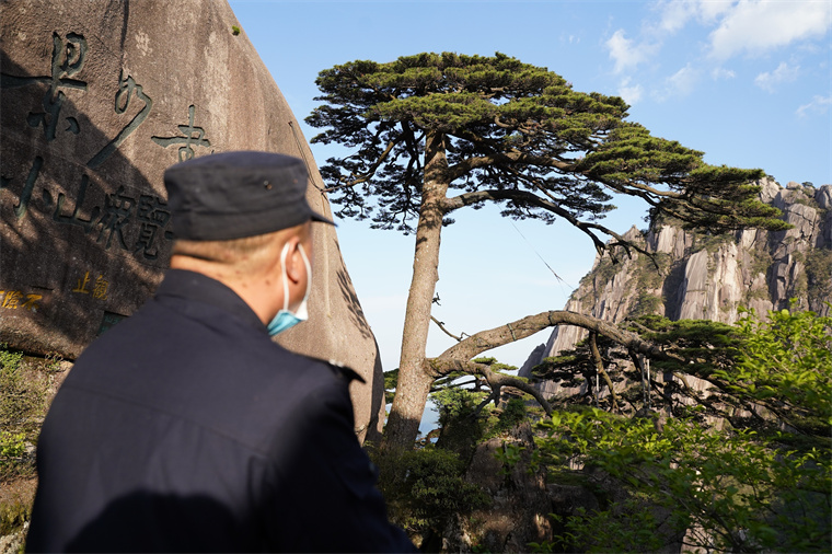 “對(duì)我來說,迎客松不單單是一棵樹,不是親人卻勝似親人,守護(hù)好迎客松,就如同守護(hù)好家人一樣?!辈⒉簧醚赞o的胡曉春,一直把迎客松當(dāng)成長(zhǎng)輩,在他眼里,他和迎客松、黃山三者之間的親密關(guān)系,就是“你守著山,我守著你”。