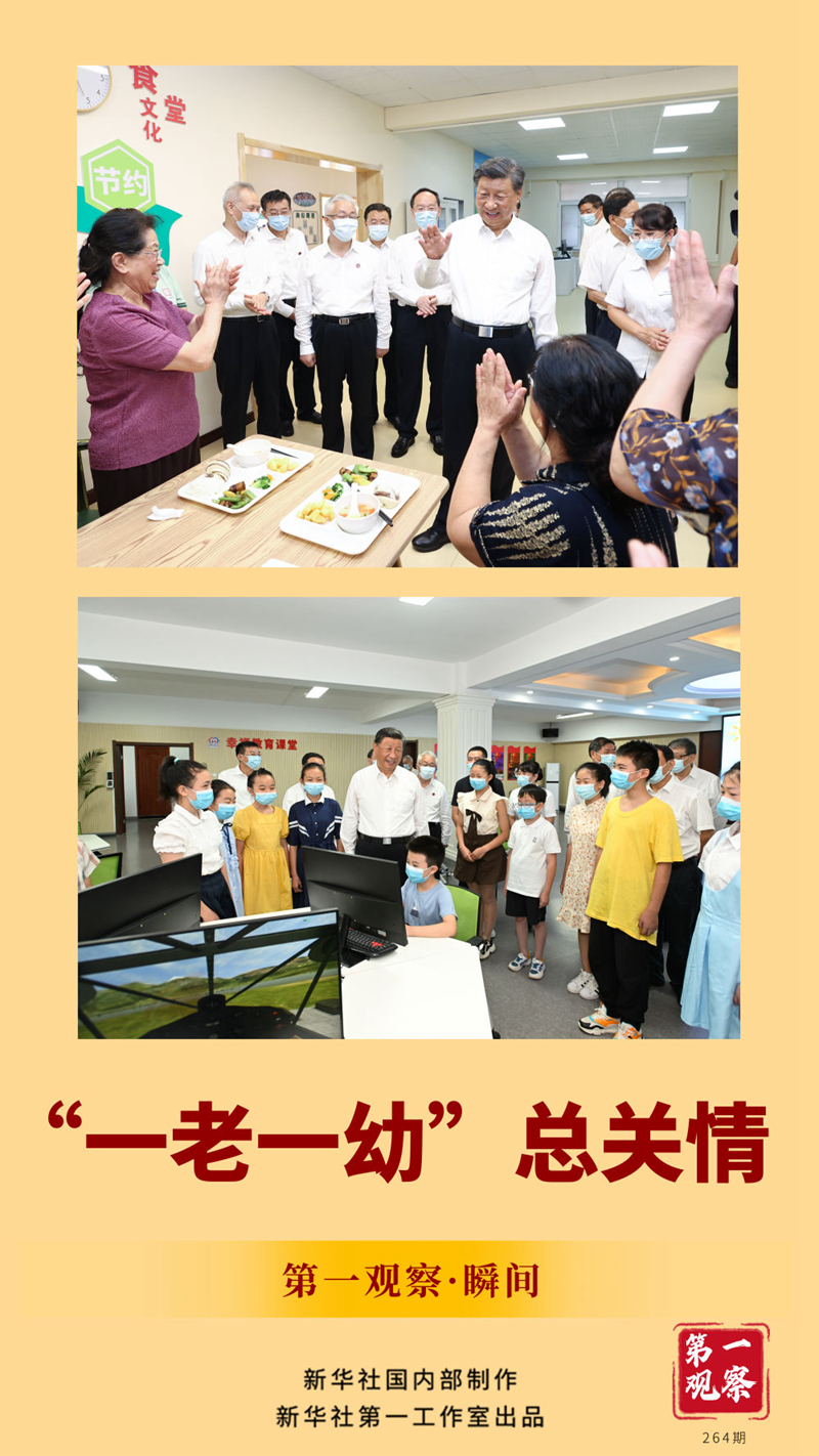 兩張照片定格的溫暖瞬間,傳遞出習(xí)近平總書(shū)記對(duì)“一老一幼”的深切關(guān)懷。