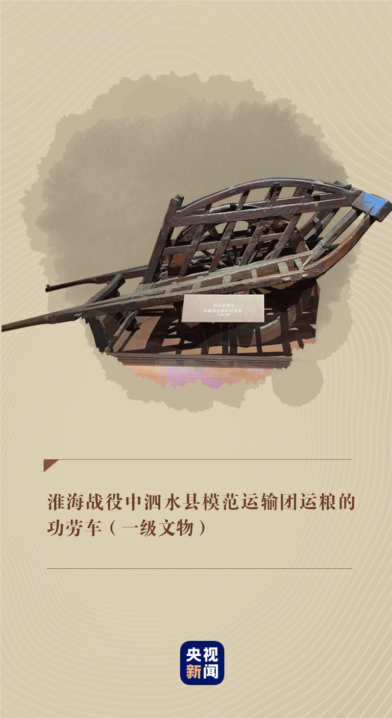 在中國(guó)共產(chǎn)黨歷史展覽館,靜臥著一輛淮海戰(zhàn)役中泗水縣模范運(yùn)輸團(tuán)運(yùn)糧的功勞車(chē)。它向人們講述著當(dāng)年硝煙彌漫的戰(zhàn)場(chǎng)上,人民群眾團(tuán)結(jié)一心,用一輛輛小車(chē)推出戰(zhàn)役勝利的感人故事。