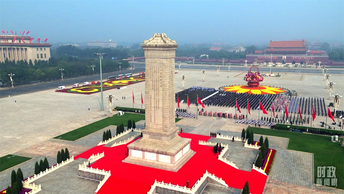 開(kāi)國(guó)大典前一天,人民英雄紀(jì)念碑在天安門(mén)廣場(chǎng)奠基。這歷史性的一筆,在新時(shí)代被賦予新的內(nèi)涵。2014年,我國(guó)將9月30日設(shè)立為“烈士紀(jì)念日”。從這一年開(kāi)始,以往國(guó)慶當(dāng)天的敬獻(xiàn)花籃儀式,改在了烈士紀(jì)念日隆重舉行。正是無(wú)數(shù)革命先烈的流血犧牲,贏得了新中國(guó)的誕生,換來(lái)了今日之中國(guó)。巍巍紀(jì)念碑,見(jiàn)證最深切的緬懷、最崇高的致敬。