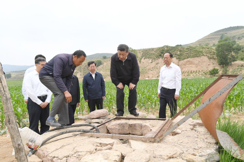 ↑2017年6月21日下午,習(xí)近平在山西省忻州市岢嵐縣趙家洼村察看作為全村唯一生產(chǎn)生活水源的淺層滲水井。