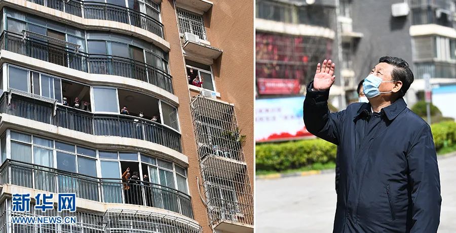 2020年3月10日,中共中央總書(shū)記、國(guó)家主席、中央軍委主席習(xí)近平專門(mén)赴湖北省武漢市考察新冠肺炎疫情防控工作。這是習(xí)近平在東湖新城社區(qū)考察時(shí),向在家隔離居住的居民揮手致意、表示慰問(wèn)(拼版照片)。新華社記者 謝環(huán)馳/攝