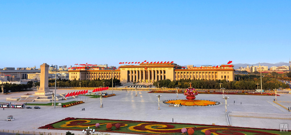△16日清晨的天安門廣場(chǎng)。(總臺(tái)央視記者范學(xué)禹拍攝)