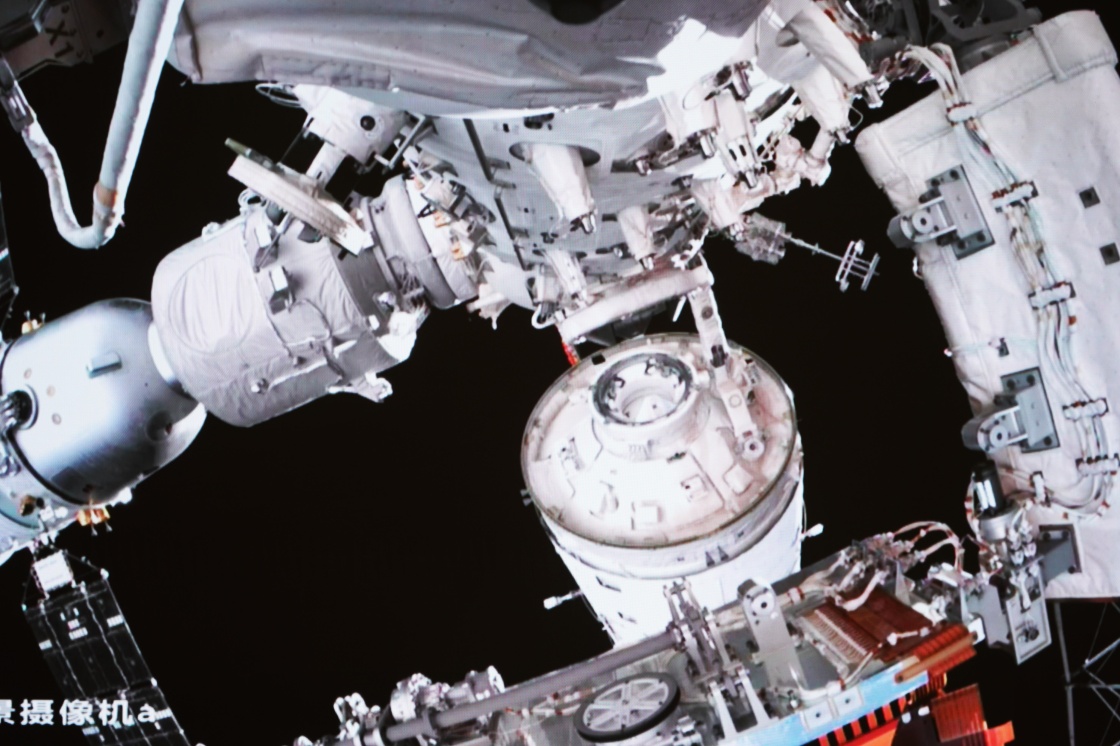 2022年9月30日在北京航天飛行控制中心拍攝的問天實驗艙轉位畫面。這是問天實驗艙與天和核心艙分離,采用平面轉位方式進行轉位。新華社記者 郭中正 攝