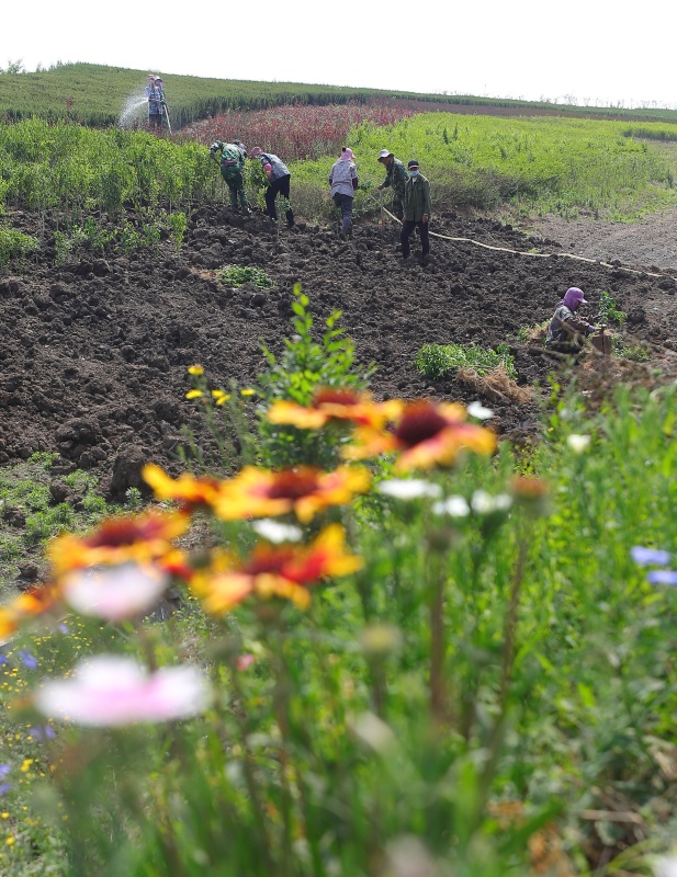 2022年6月2日,工人在遼寧撫順西露天礦內植樹。新華社記者 楊青攝
