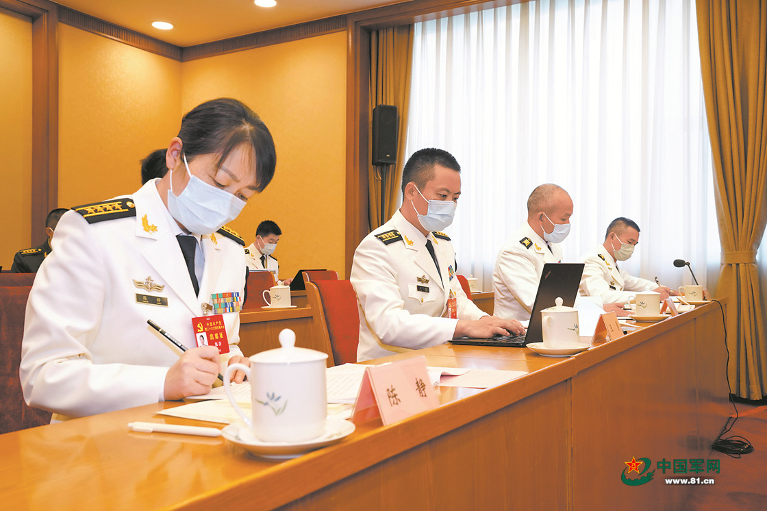 解放軍和武警部隊(duì)代表認(rèn)真討論黨的二十大報(bào)告。解放軍報(bào)記者 范顯海 攝