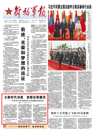 2021年11月,習(xí)近平總書記主持召開中共中央政治局會議,審議《軍隊功勛榮譽表彰條例》,強調(diào)“廣泛開展新時代立功創(chuàng)?;顒印?。這為傳承弘揚人民軍隊光榮傳統(tǒng)、加強新時代軍隊功勛榮譽表彰工作指明前行方向,凝聚起奮力實現(xiàn)建軍一百年奮斗目標(biāo)的磅礴力量。